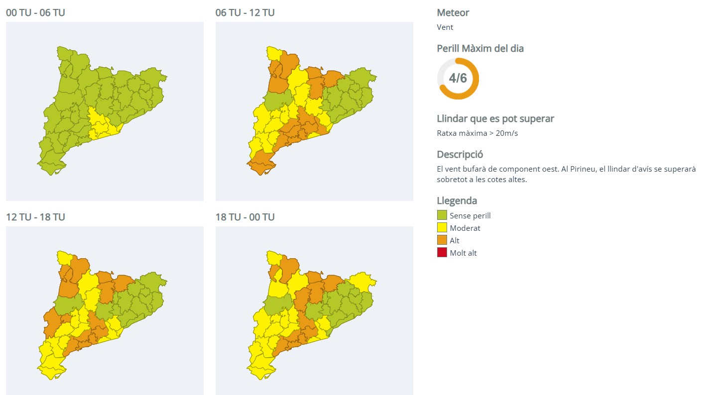 Episodi de fort vent especialment les hores centrals del dia a moltes comarques