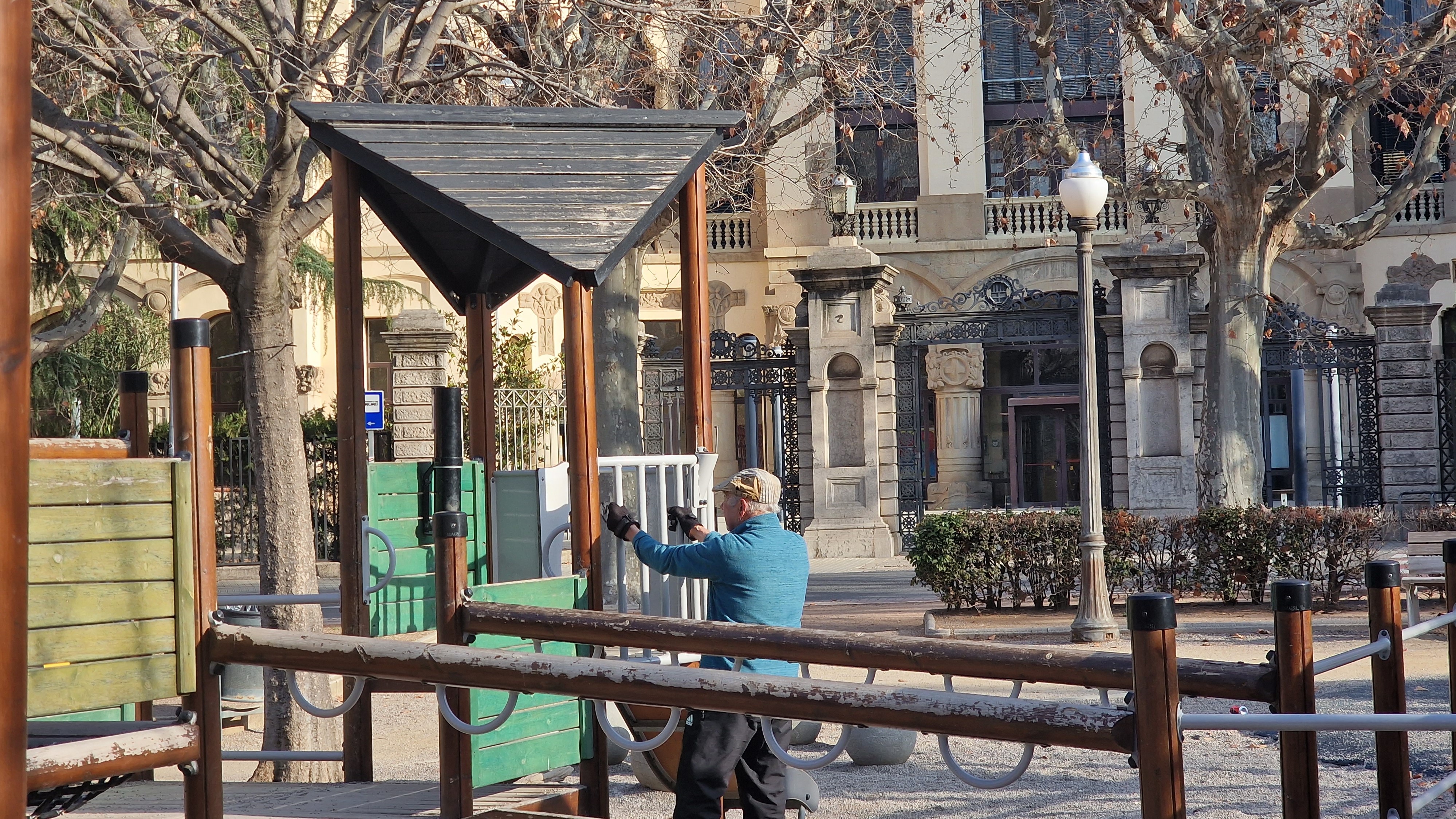 Fent exercici al parc de la plaça Espanya de Manresa