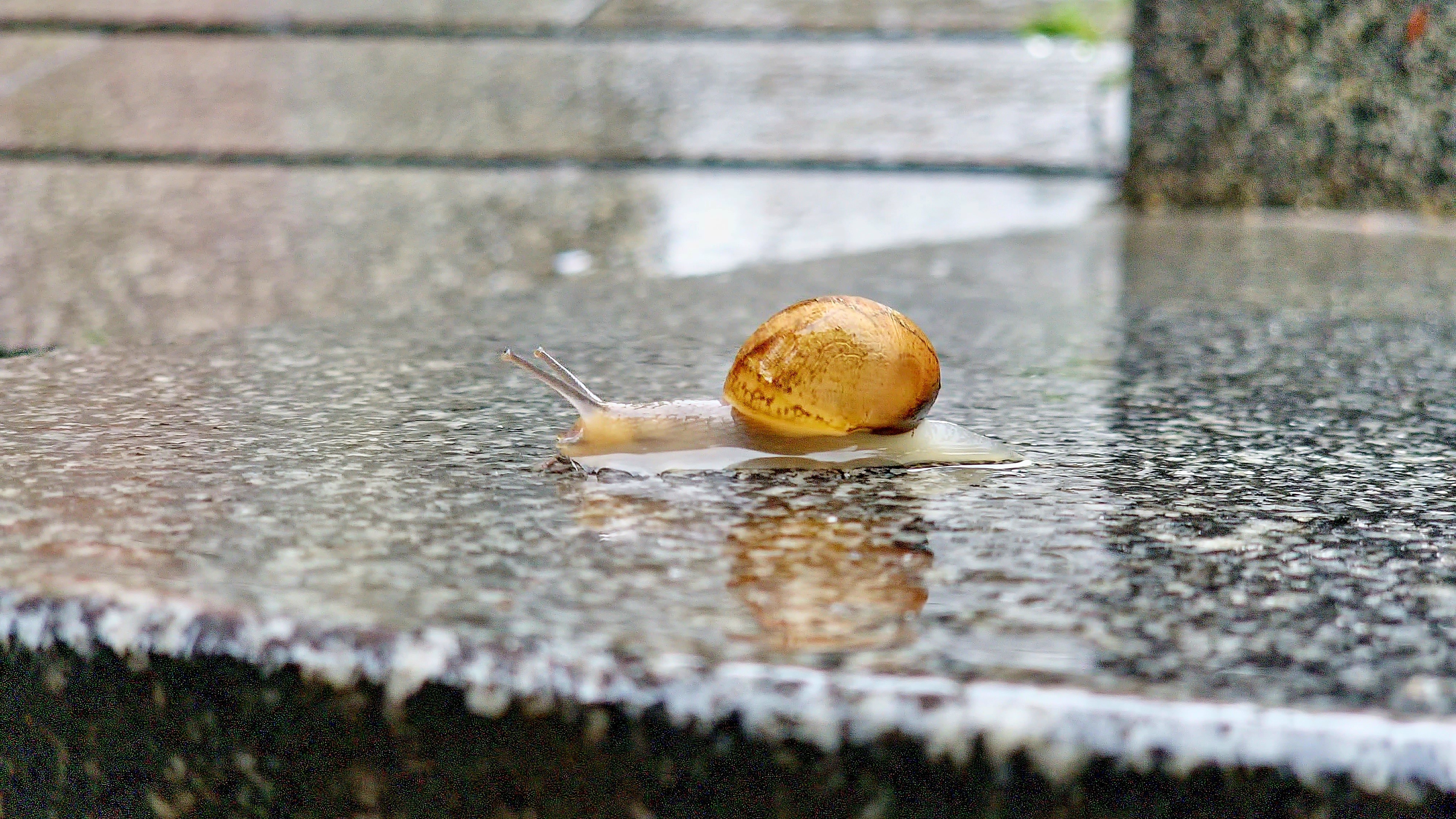 Un caragol sortint després de la pluja