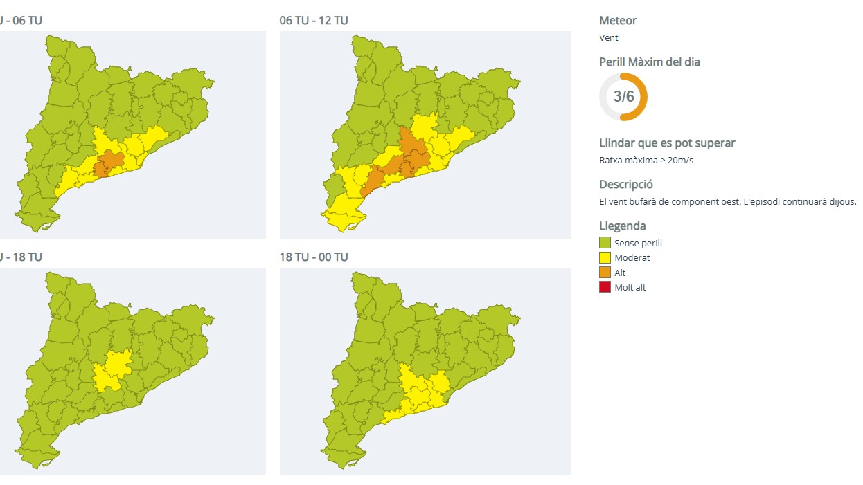 Activat el pla VENTCAT per la ventada prevista a partir de dimecres
