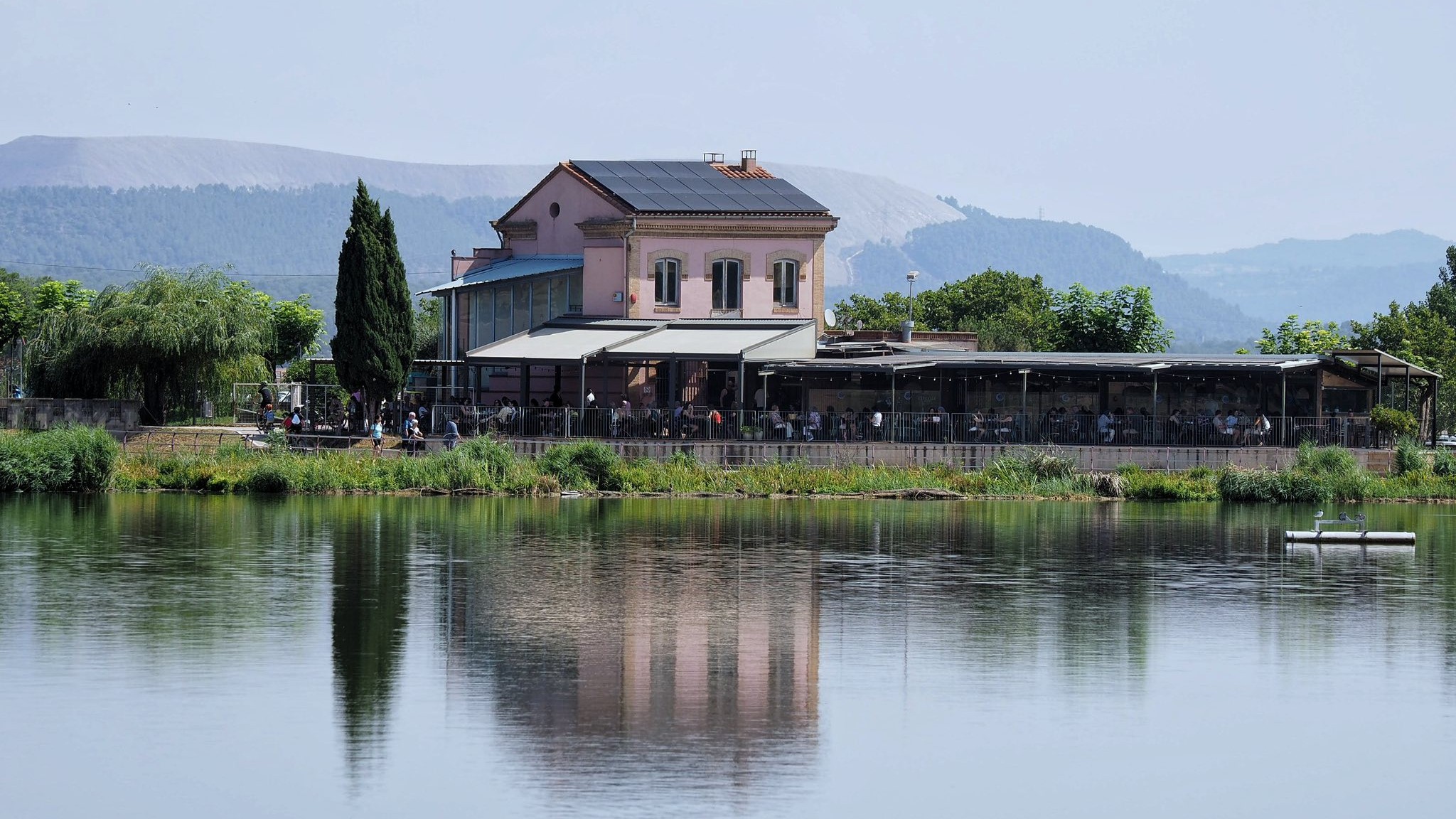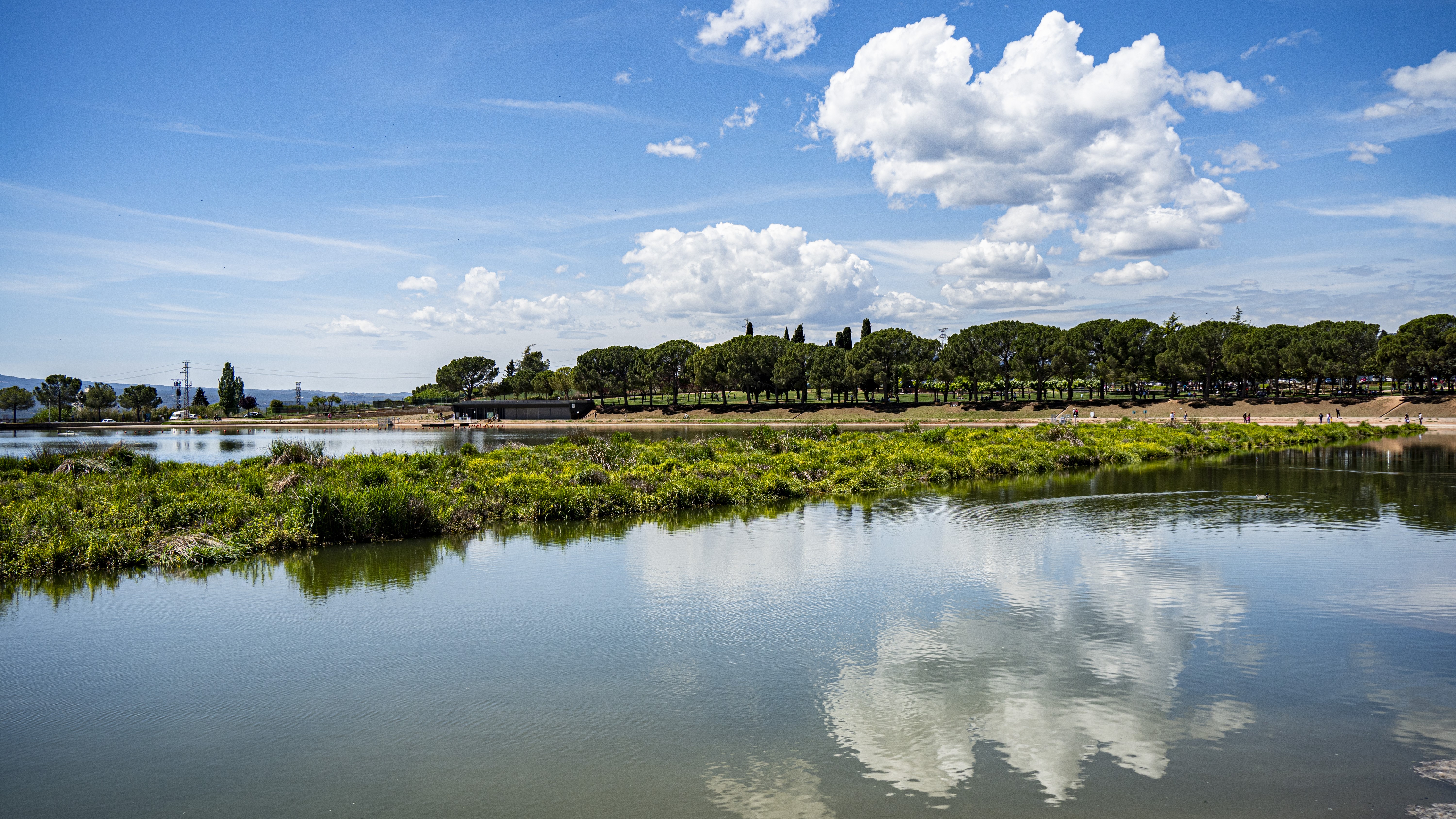 El Parc de l'Agulla amb els núvols reflectits al llac
