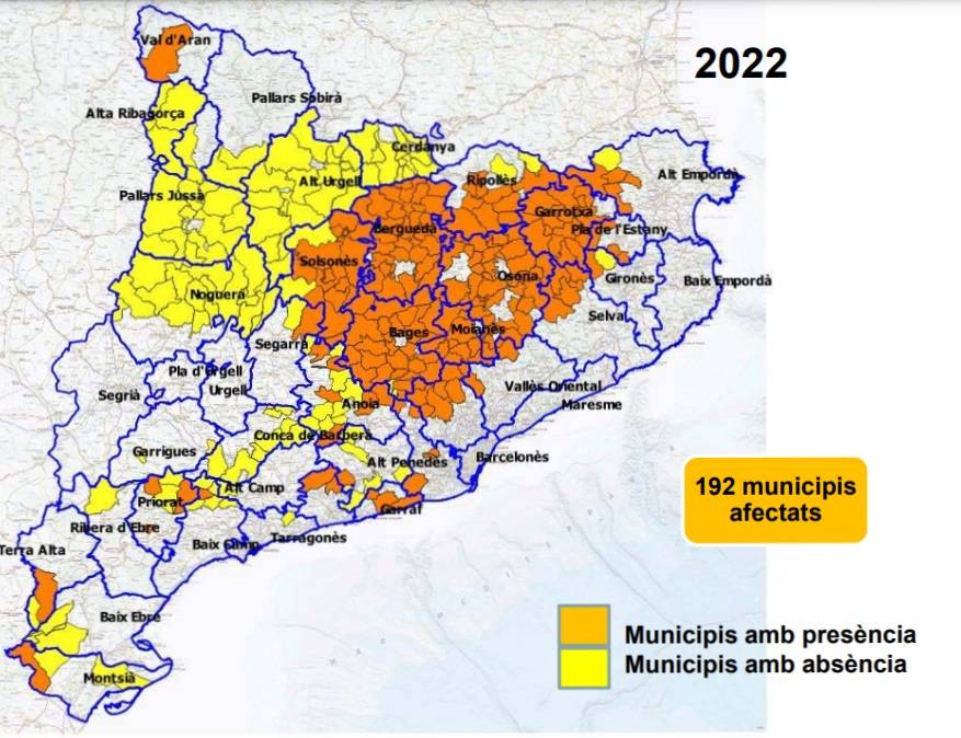 Més informació sobre l'evolució d'aquesta plaga a Catalunya, una fitxa tècnica, infografies, tríptics i un pòster i dades comarcals, en aquest enllaç. |