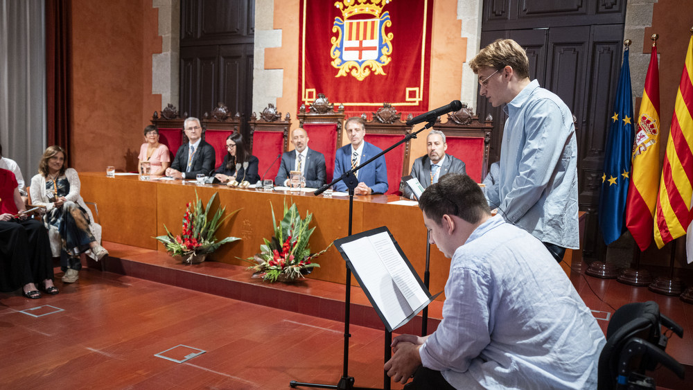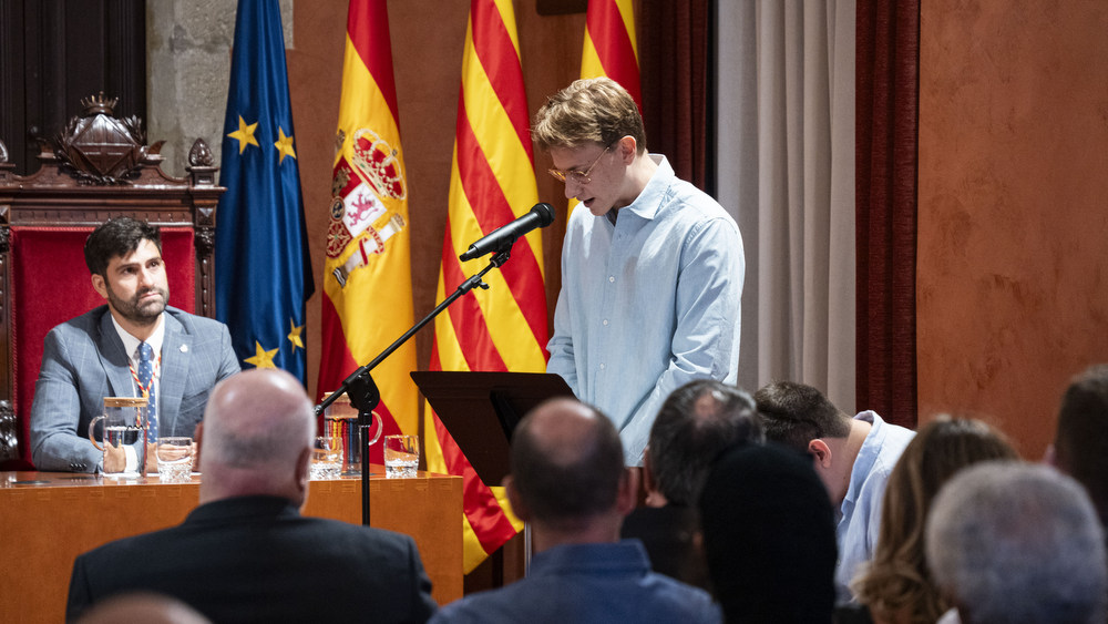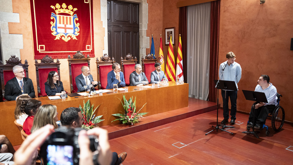 Els pregoners de la Festa Major de Manresa 2025, Marc i Jan Buxaderas Escolà, omplen el Saló de Sessions, la Sala de Columnes i també els porxos de l’Ajuntament, i emocionen el públic amb un discurs carregat de vivències personals i d’estima a la ciutat, subratllant els espais, les persones i les experiències que han marcat el seu camí. |
