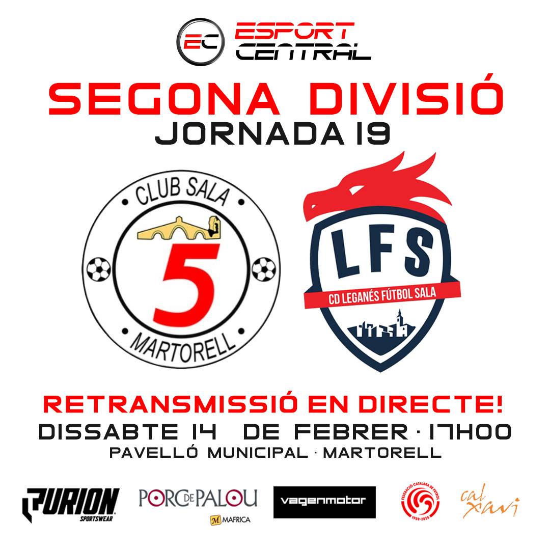 Dissabte a les 5 de la tarda, Esport Central s'estrena en la Segona divisió de la mà del Sala 5 Martorell. Els del Baix Llobregat reben la visita del Leganés FS. Els locals són ara mateix tretzens a la classificació amb 16 punts, un més que els madrilenys que ara mateix ocupen la primera plaça de descens.