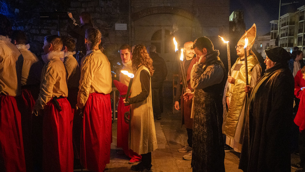 Les millors fotografies dels actes de la vigília de la Llumamb l'encesa d'espelmes i el pacte de la concòrdia amb l'arribada de la llum i l'aigua al monument de la plaça Infants.